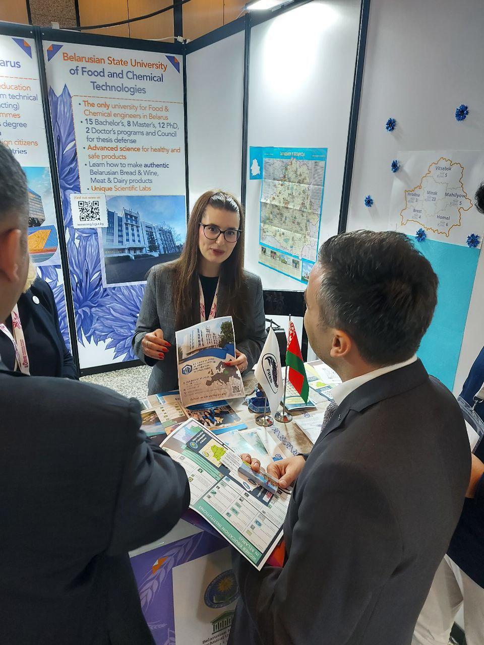 В рамках саммита развернута экспозиция национального стенда «Education in Belarus». Образовательный потенциал нашей страны представляет делегация, в состав которой вошли Республиканский институт высшей школы, Белорусский национальный технический университет и Белорусский государственный университет пищевых и химических технологий.