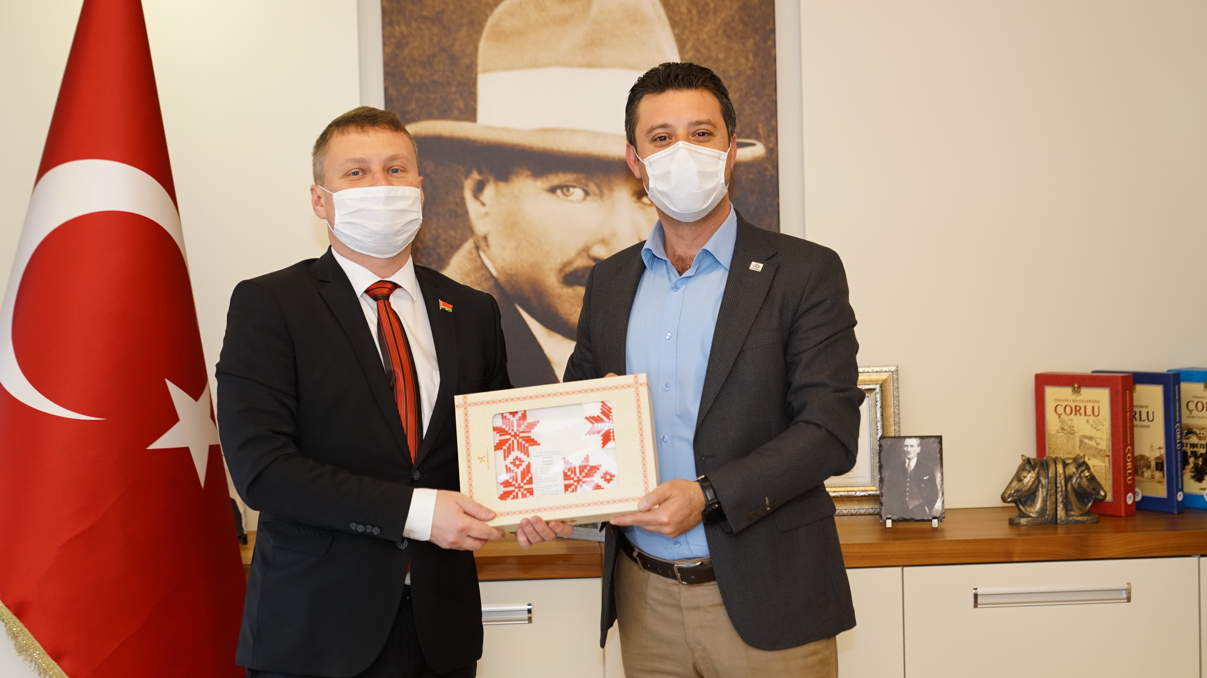 На встрече с мэром Чорлу Ахметом Сарыкуртом стороны обсудили вопросы наращивания межрегионального взаимодействия главным образом на торгово-экономическом направлении. Турецкая сторона внесла предложение об установлении побратимских отношений с одним из белорусских городов.
